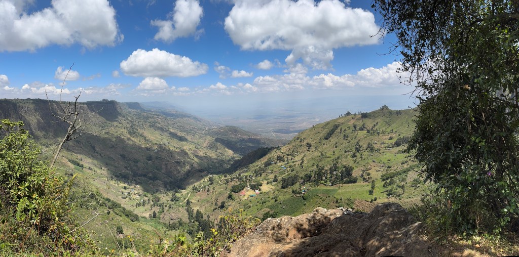 I flew on JamboJet from JKIA in Nairobi to Eldoret-a short 40 minute flight. JamboJet offered several flights throughout the day which is why I chose it for this destination. First stop was to see a waterfall in the area. It was a relatively short walk down to the falls and there were other people along the route. There were some rickety bridges and a pretty amazing view of the Rift Valley. The waterfall traversed through rocks and created pools with ravaging tubs below.