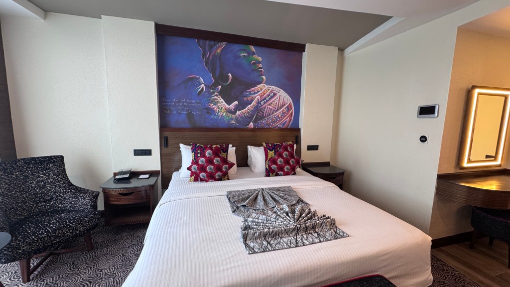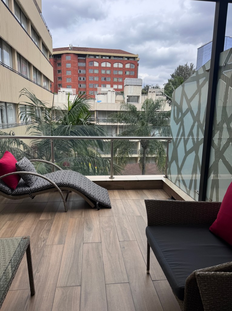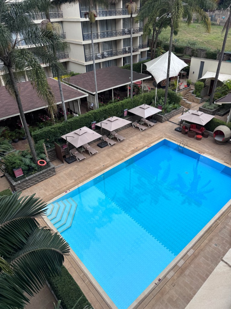 Sarova Panafric-my favorite of the two Sarova brand hotels in Nairobi. The Stanley was very nice and had history-prestigious, but the Panafric felt more my vibe. There were smiles on everyone’s faces as I was greeted when I entered. I met Jane, who would be my guide and show me the benefits of staying with them. There is a small seating area by the elevators where you can work, meet friends, even have your food in that area. The key card for your room is only keyed for the floor of your room and any public areas.